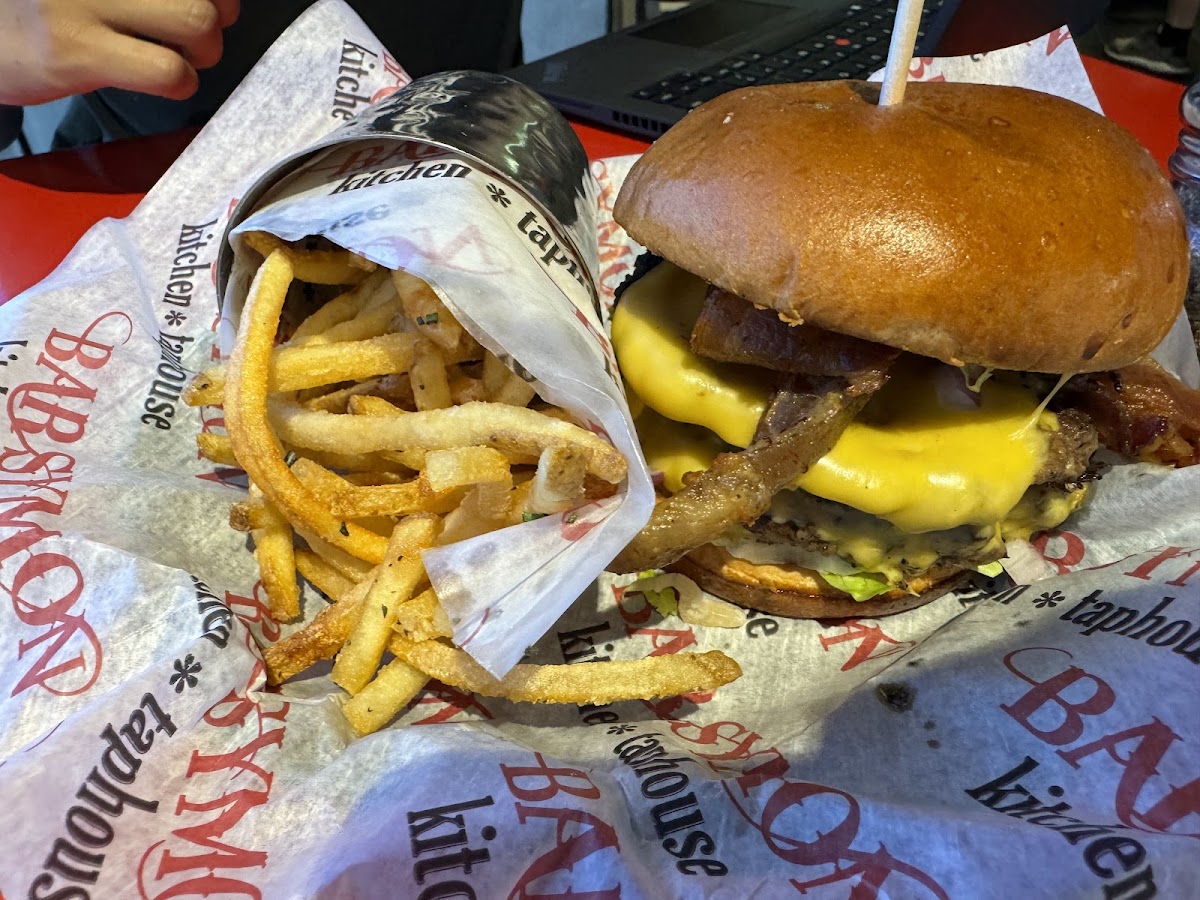 Very very well put together and tasty smash bacon burger. Crispy bacon, just the right amount of lettuce and onions so it wasn’t overwhelming to eat. The special sauce seemed mayo based and was super good and a good amount to not need any other condiment (I’m normally a ketchup “dipper”). Parm fries were loaded with Parm and very excellent. I’d definitely eat here again.