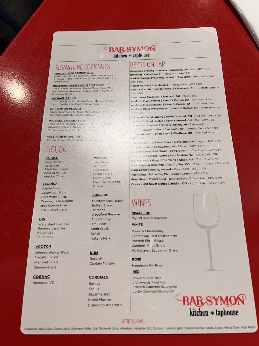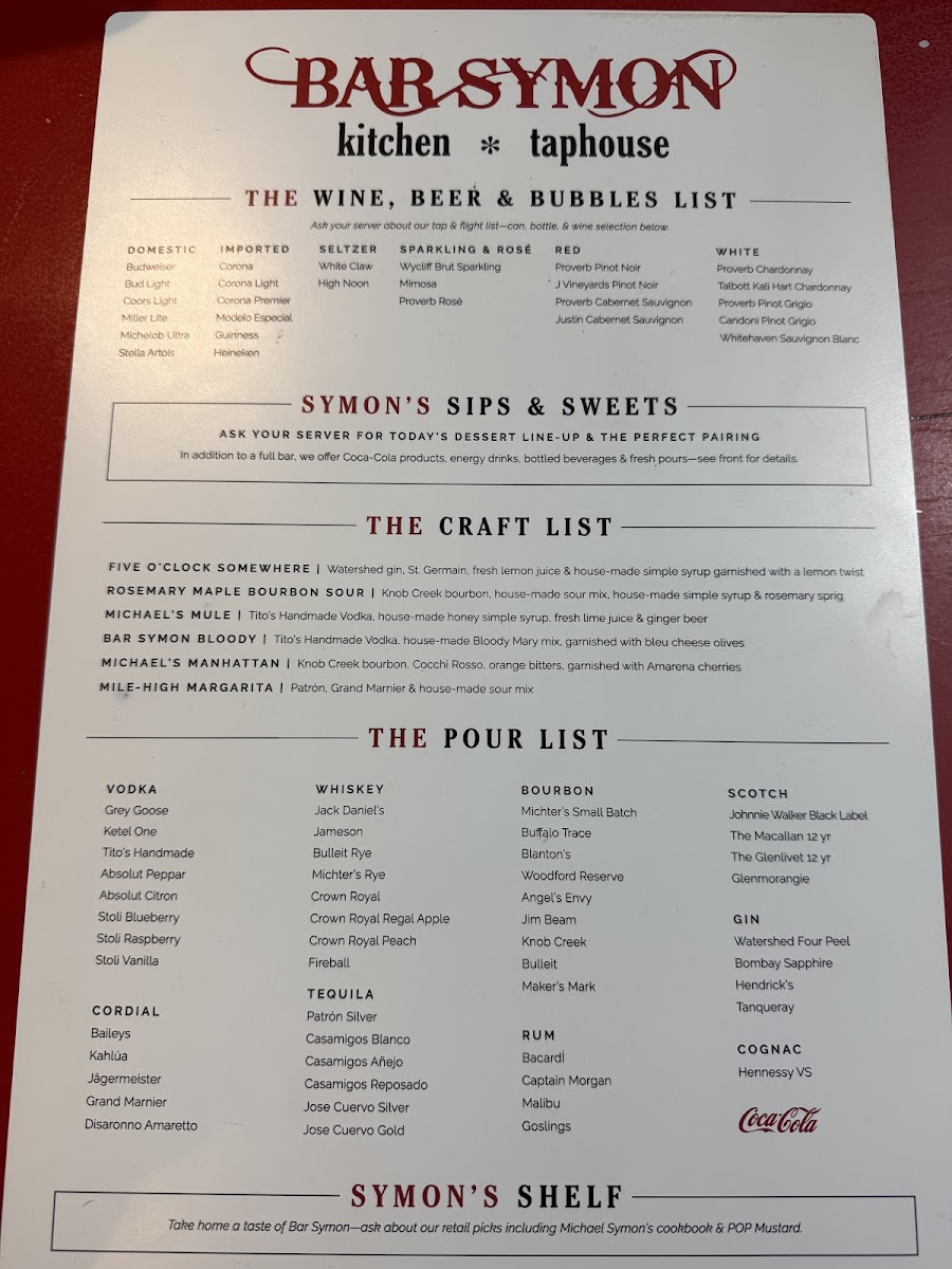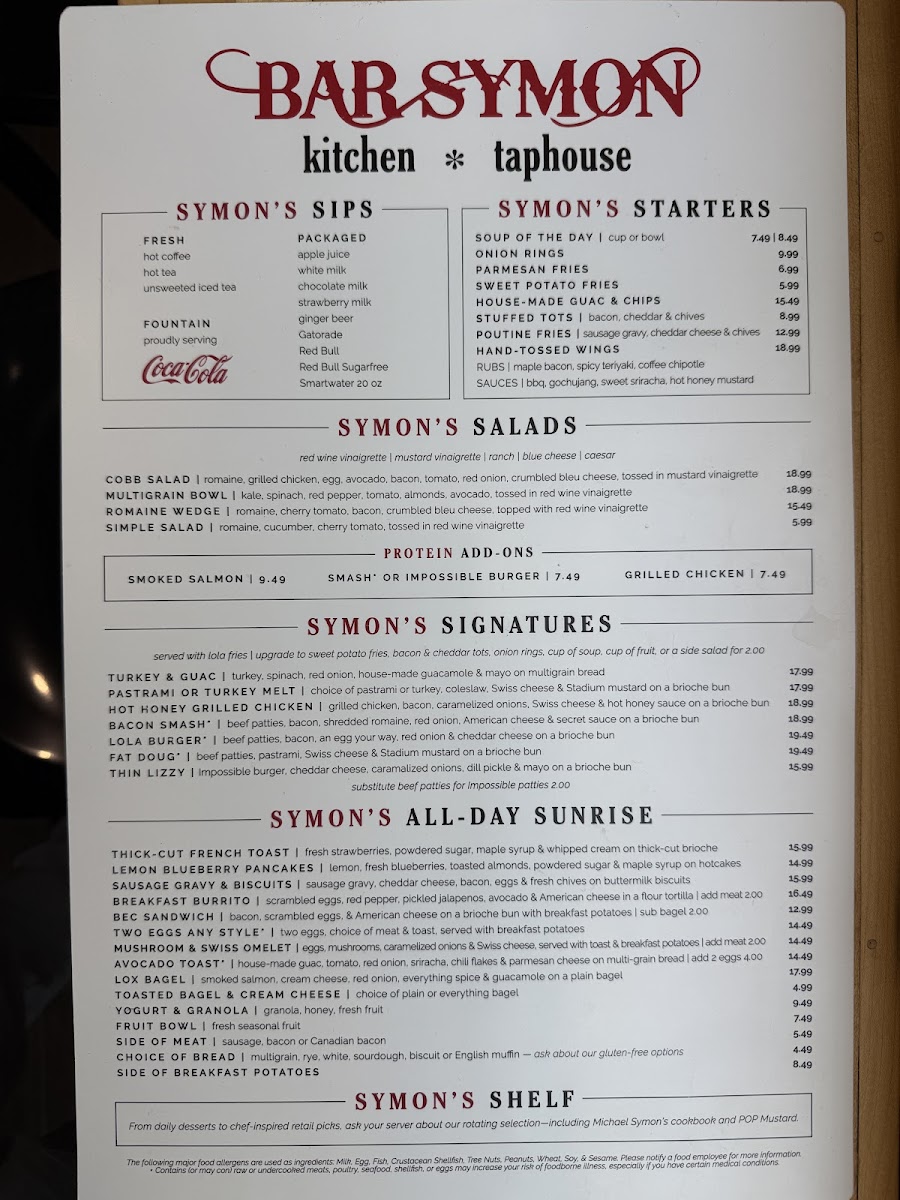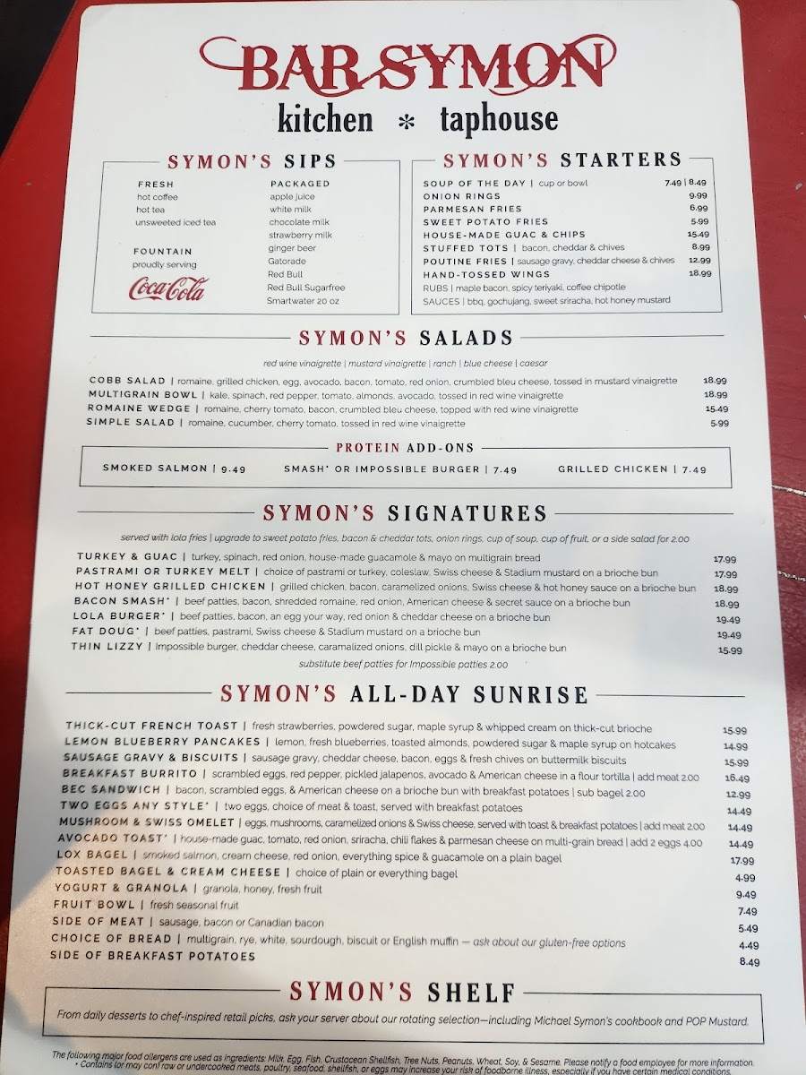 Bar Symon CLE Airport offers a menu that blends casual dining with familiar comforts, perfect for travelers seeking a satisfying meal or refreshing drink between flights. The selection feels approachable and straightforward, with options ranging from hearty breakfast sandwiches and fluffy pancakes to savory burgers and crisp salads.