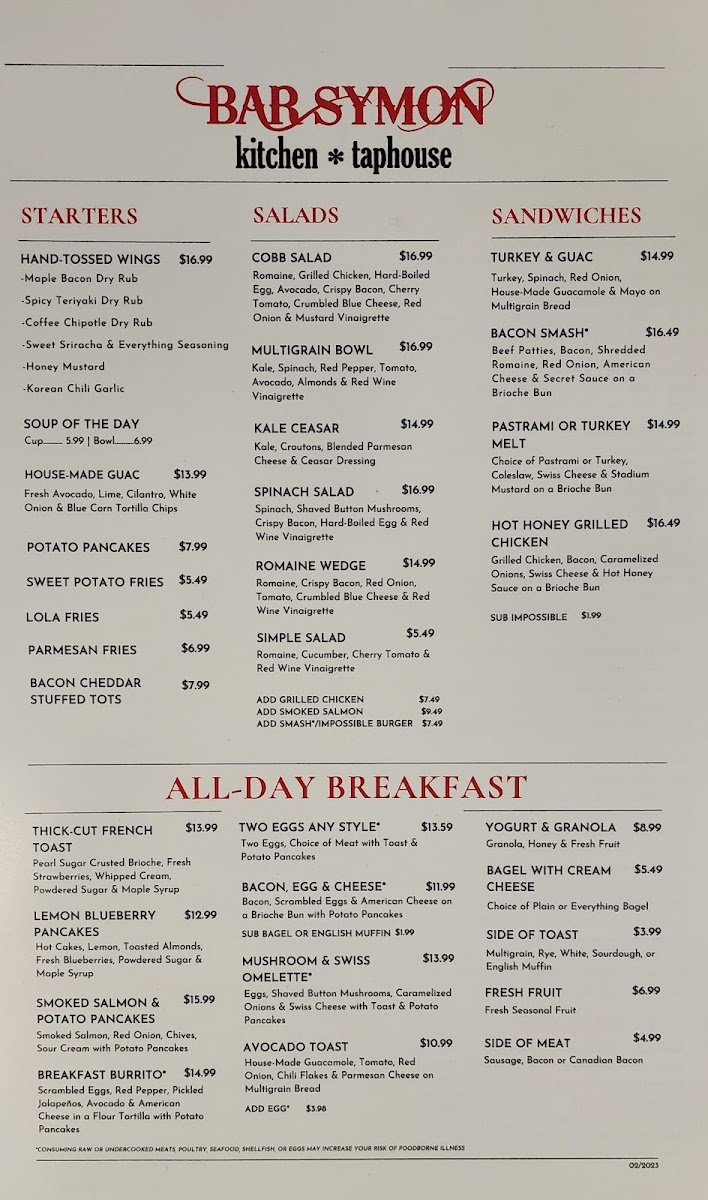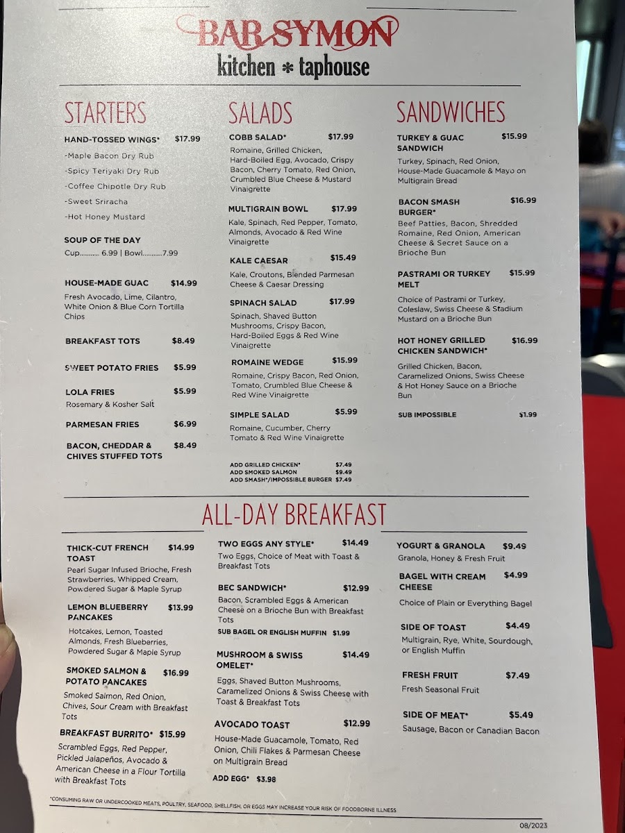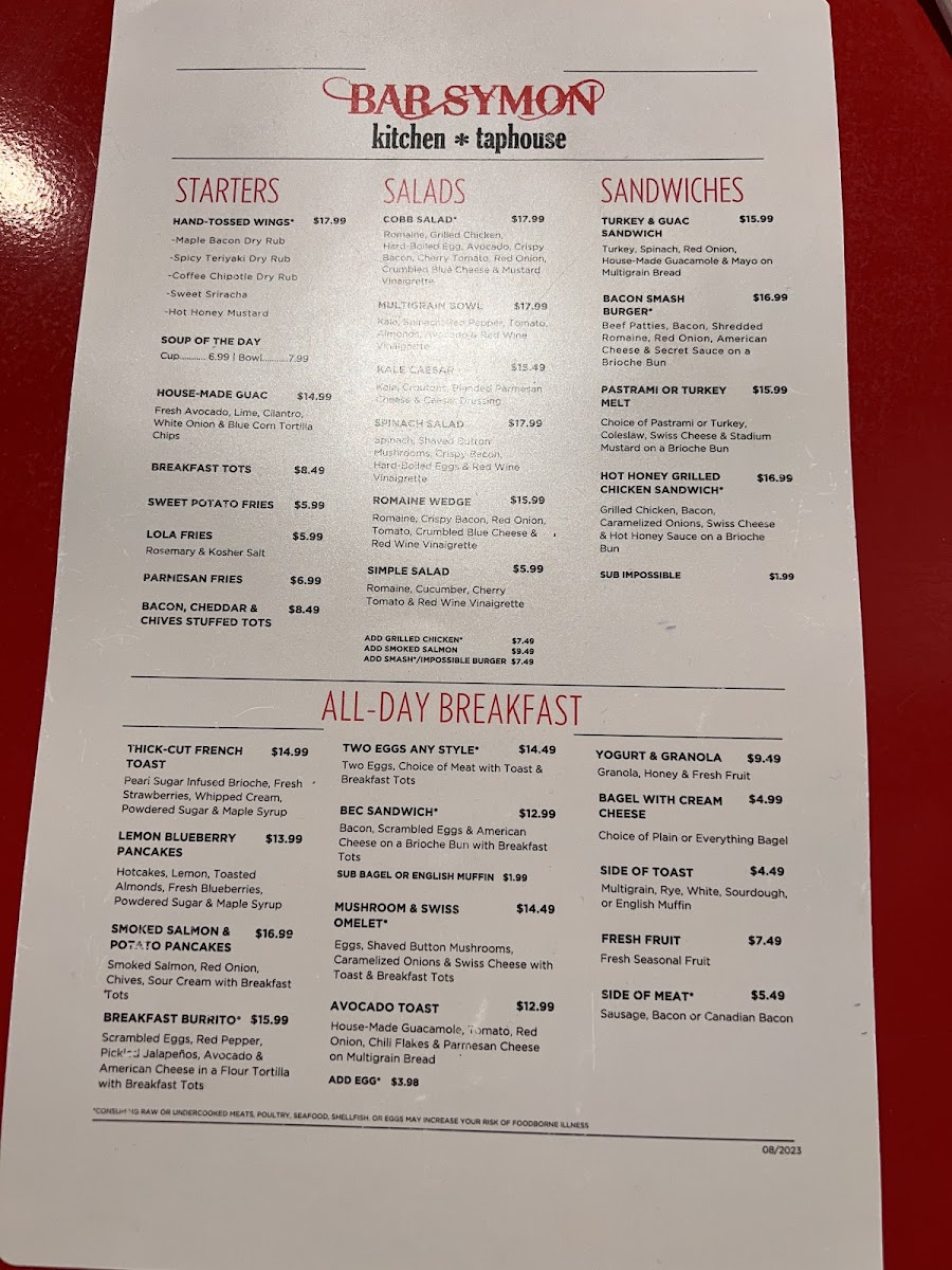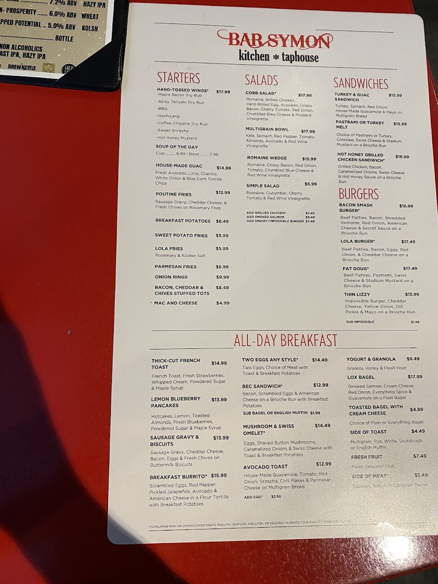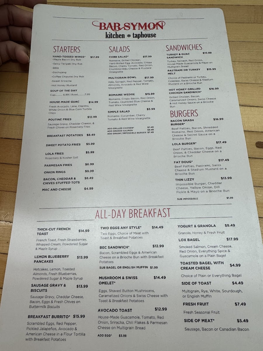 Bar Symon CLE Airport offers a menu that blends casual dining with familiar comforts, perfect for travelers seeking a satisfying meal or refreshing drink between flights. The selection feels approachable and straightforward, with options ranging from hearty breakfast sandwiches and fluffy pancakes to savory burgers and crisp salads.